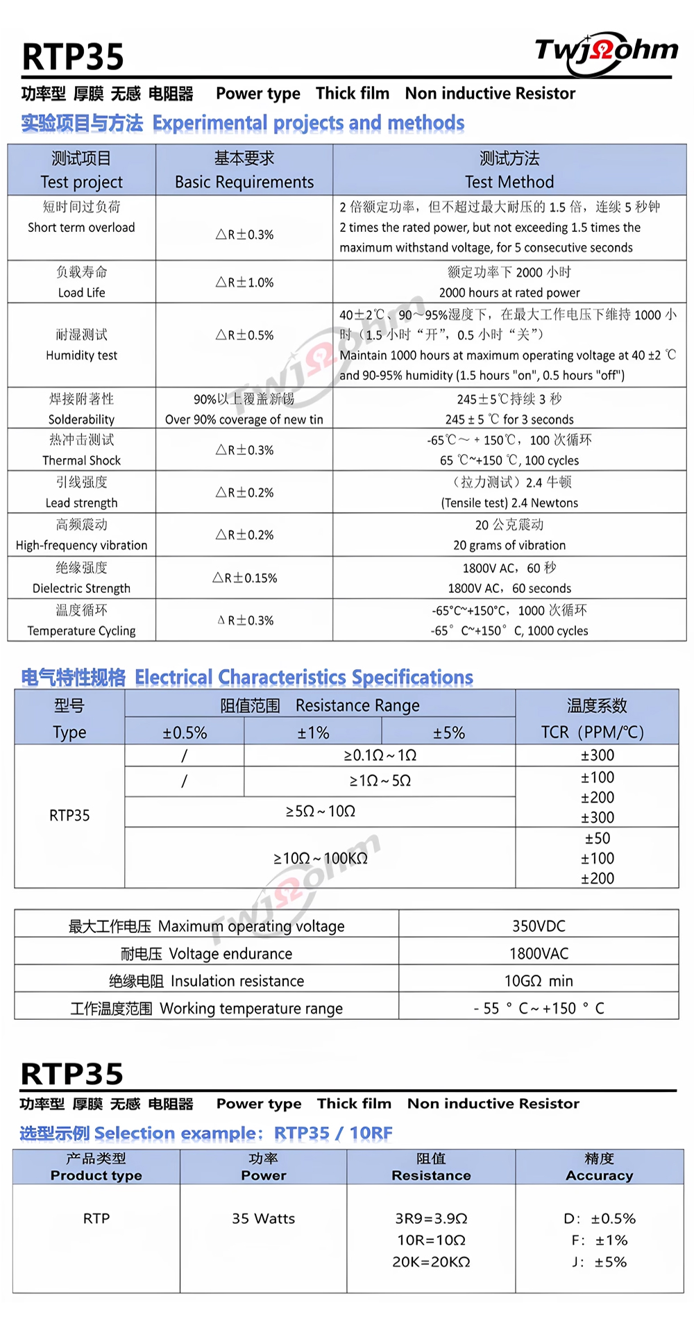 TO220大功率厚膜无感电阻RTP 35W1KF10KF20KF50K8R20R20R22R30R5R100R200R300R500R